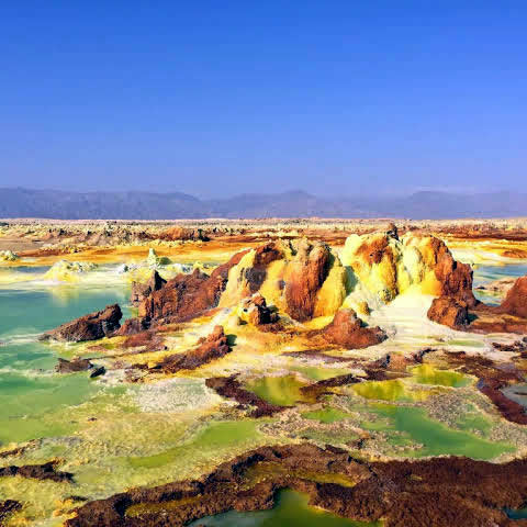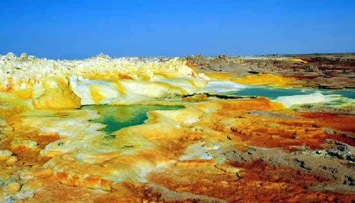 Ahmed Ella to Dallol to Lake Asale to Mekele: Early morning you will head out to visit the Dallol Depression and witness the amazing bubbling sulfuric acid. Then you will visit Lake Asale which is known for being full of salt and a salt extracting area. This day also provides opportunities to take a camel caravan before returning back to Mekele via your vehicle.